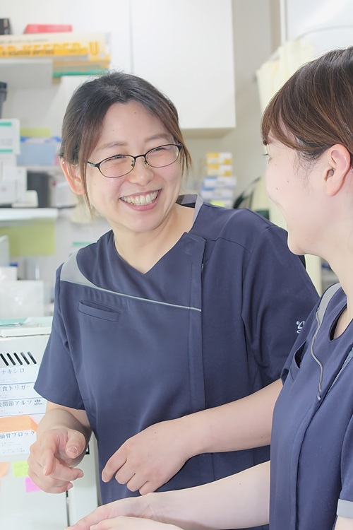 (Iさん)以前の職場が院長と一緒だったんです。当時は直接院長と関わったことは無かったのですが、人伝に紹介していただき、病院に勤めながら週に一度のシフト制のアルバイトでこちらに来ていました。病院では終末期の病棟にいたので、精神的にしんどい部分が多かったんです。一度送り出したらもう二度とお顔が見られない、なんてことが多かったものですから。「お大事に」と言って元気な患者様を送り出し、今後の人生を豊かにするサポートができる仕事に魅力を感じ、こちらのクリニックに転職を決めました。